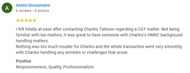 Our Managing Partner, Charles Tateson, is an Ex-HMRC Senior Tax Professional who worked within the Capital Gains Tax team. Charles personally oversees all of our CGT clients to ensure you are claiming every legal relief available.